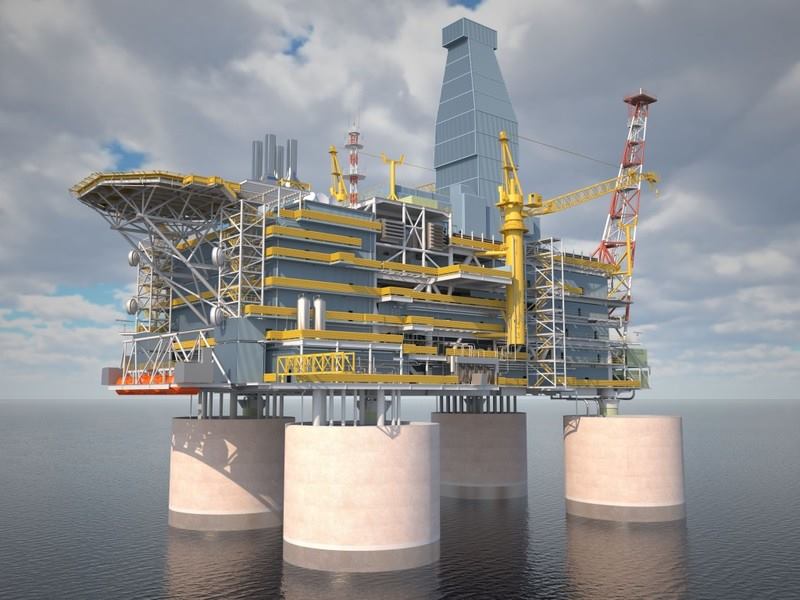 Off-shore oil platform on Okhotsk Sea (Russian Federation, built by Daewoo, operated by Exxon)