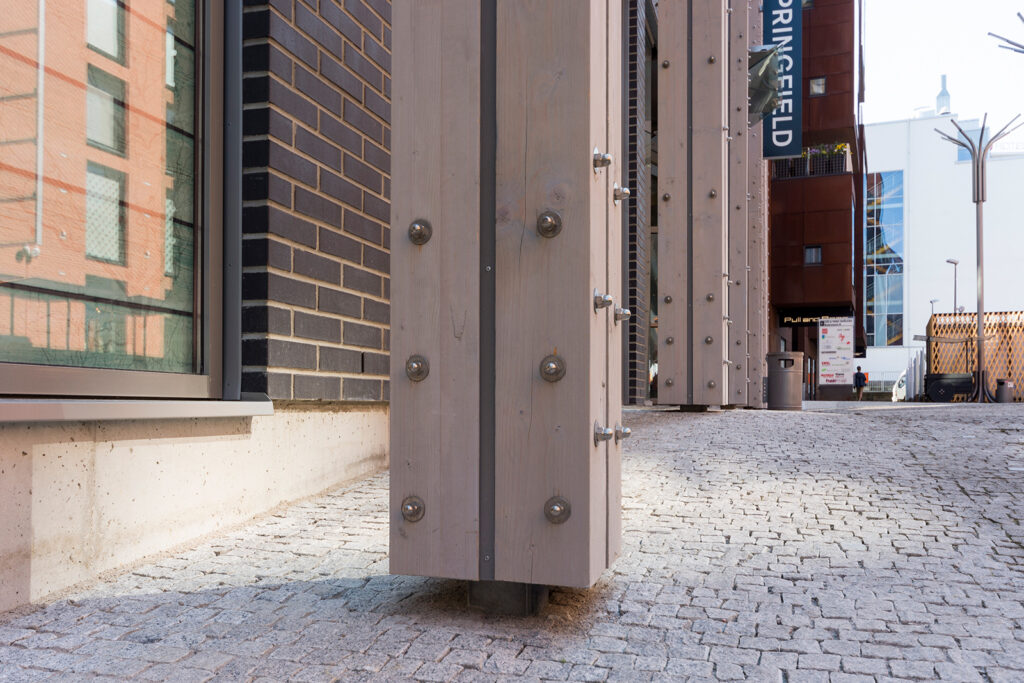 CLT pillars in Rotermann Quarter (Tallinn)